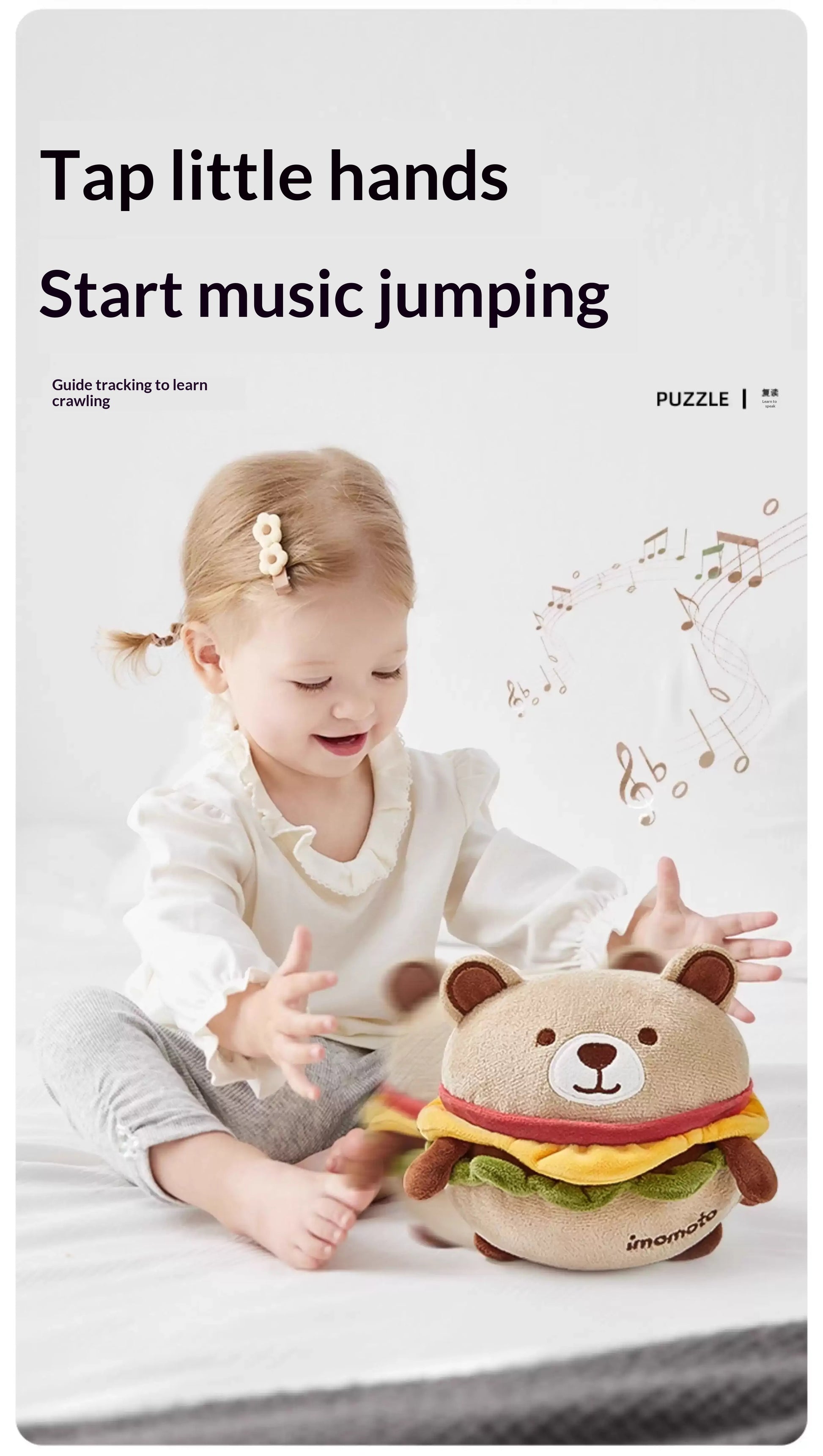• Sensory Stimulation: Musical elements engage hearing while colorful designs captivate visual attention